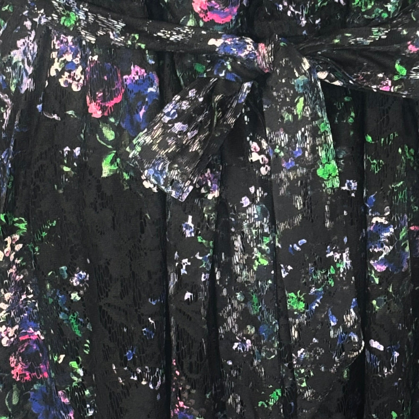 Black Floral Lace Overlay Halter Neck Dress from Lane Bryant in size 22. The dress has a zip back closure and matching tie belt at the waist. The dress is an A-line silhouette and the material is non stretch.