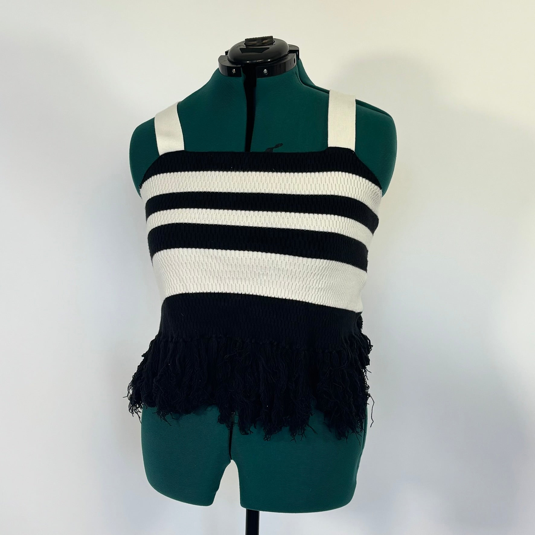 Eloquii Black and White Knit Fringe Tank in size 18/20. The top is made of a high stretch knit and the fringe is super soft yarn.