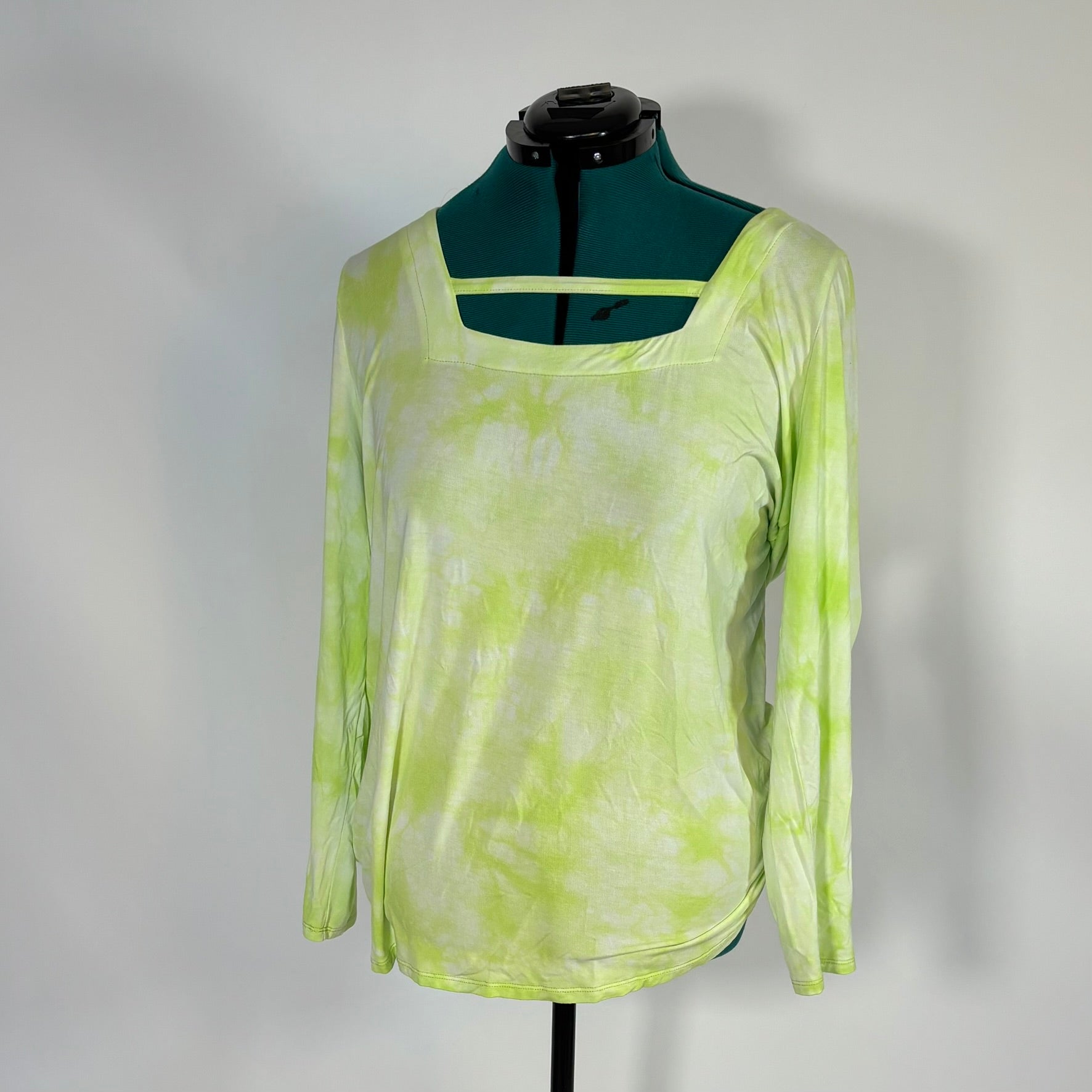 Torrid Love Sick Lime Green Tie Dye Long Sleeve Top in size 1. The top has a square neck and is made of a high stretch material.