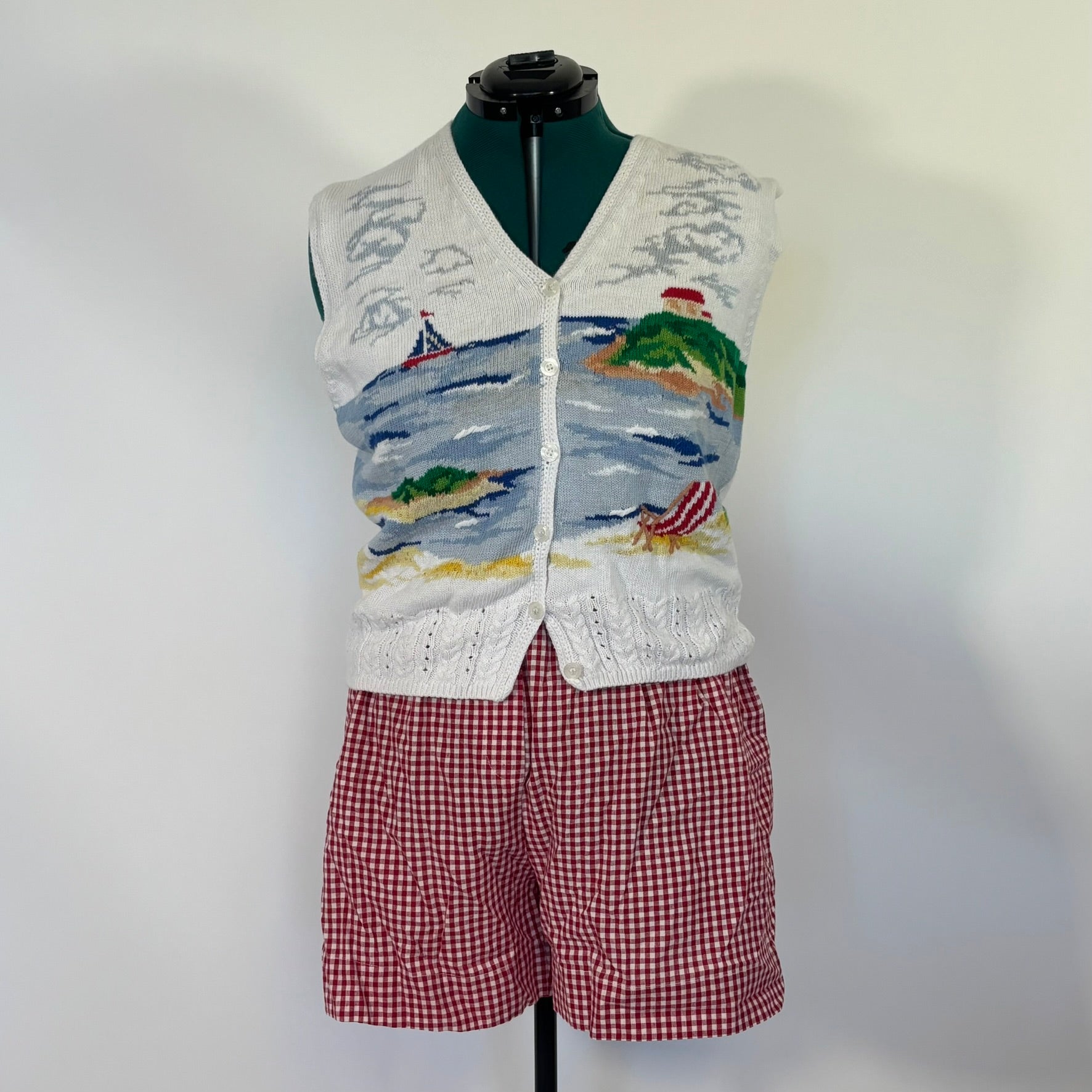 Vintage 90s Coastal Grandma Sleeveless Sweater Vest