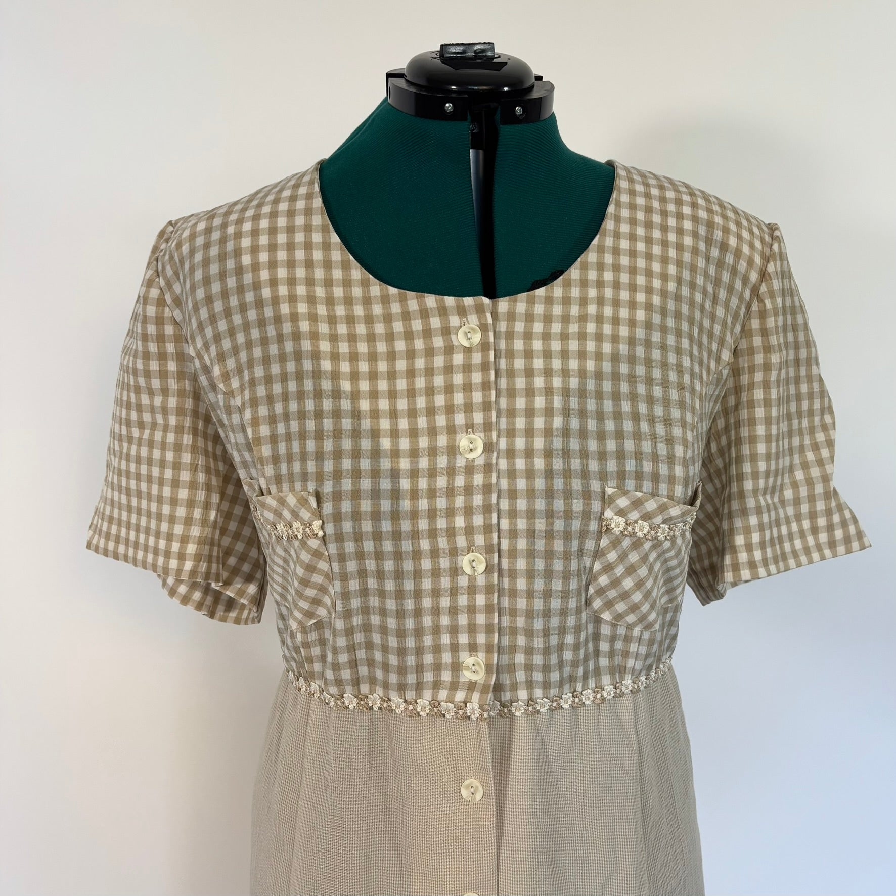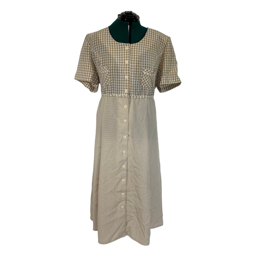 Vintage Betsy Lauren Beige Gingham Button Front 90s Teacher Dress