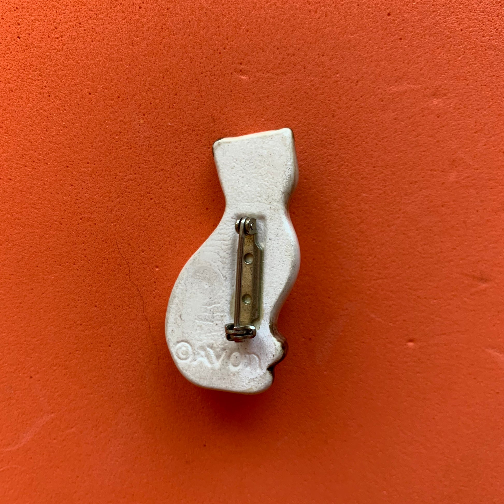 Vintage Ceramic Siamese Cat Brooch is painted black, tan, and has blue eyes