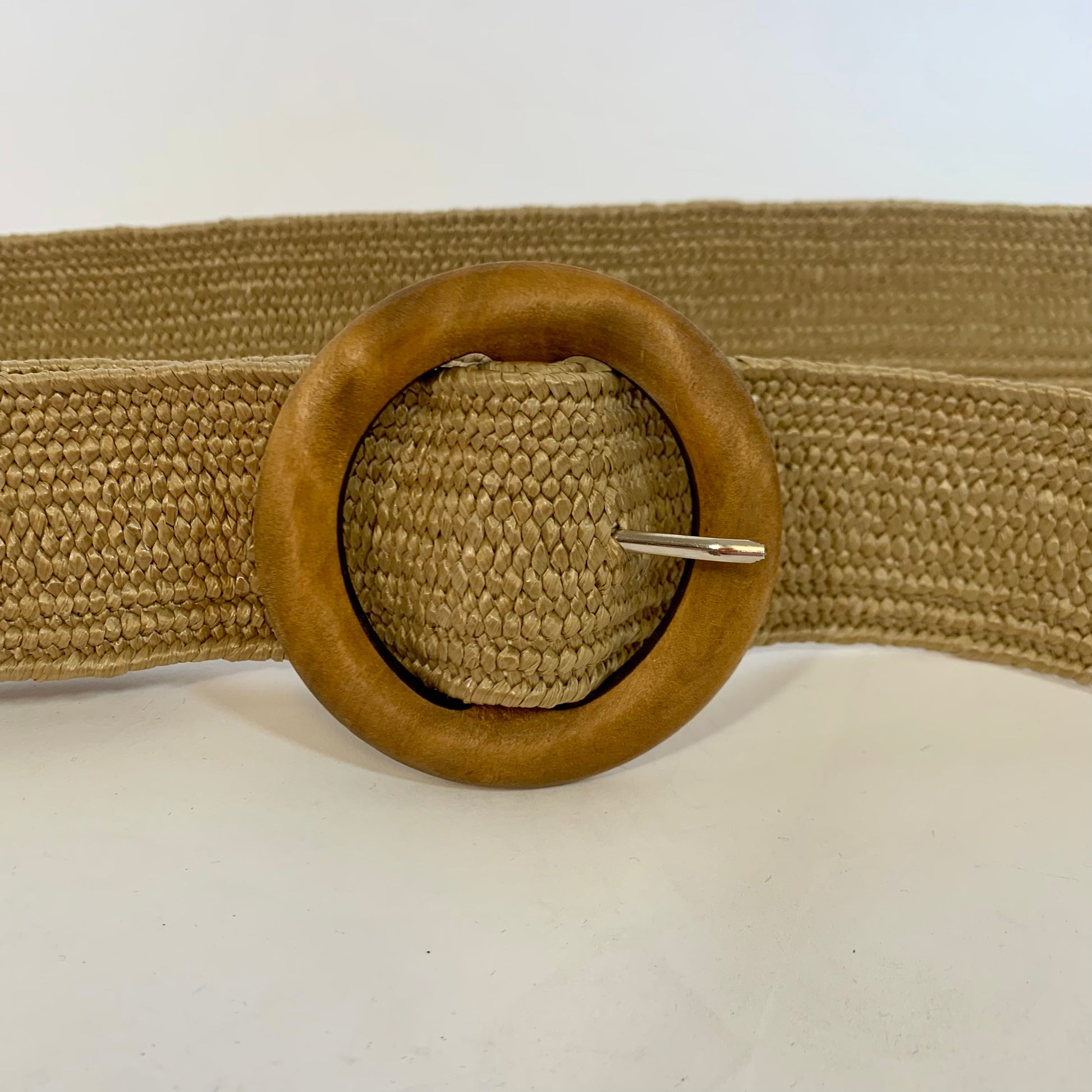 Vintage Tan Woven Belt measures 45" and stretches to a comfortable 60"