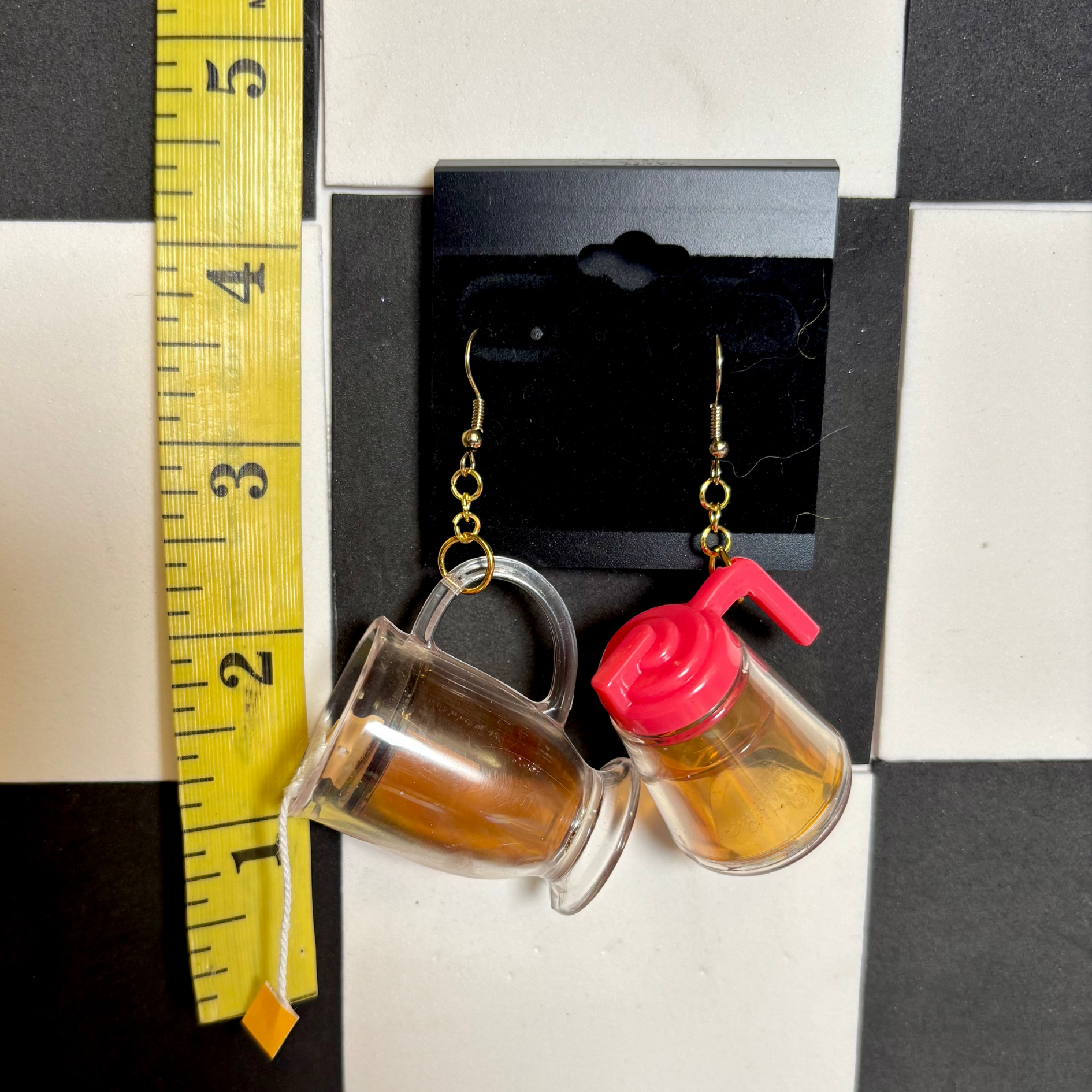 The What's the Tea? Earrings are made from a vintage Barbie tea cup and pitcher. They are medium weight and measure about 3" long.